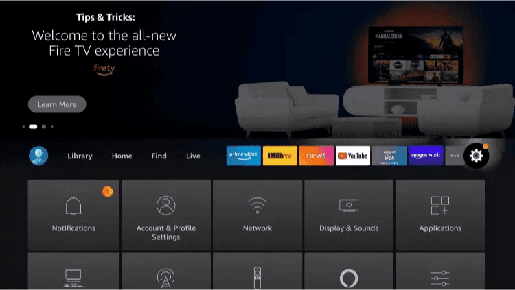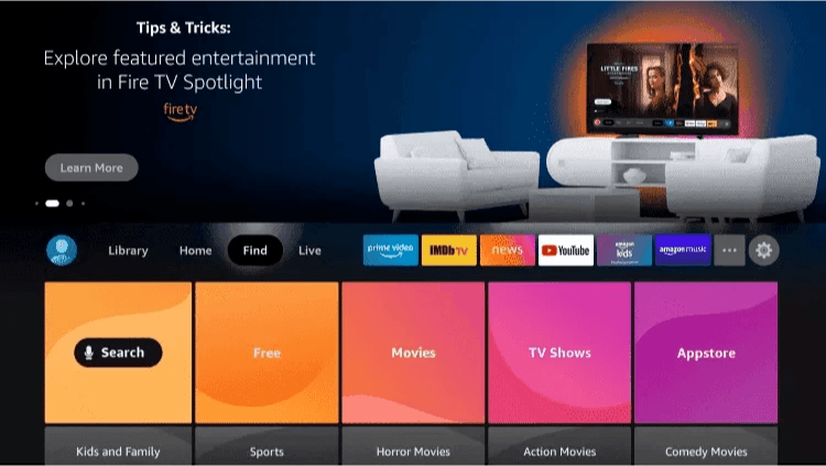Step 5: Now click on “Live TV” icon as depicted in the image via a red arrow.